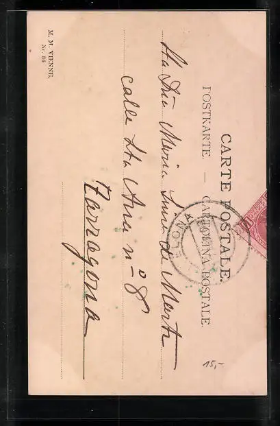 Personenbezogene Daten auf der Rückseite der Karte wurden durch blauen Textmarker unkenntlich gemacht. Die blauen Stellen sind auf die Vorderseite durchgeweicht und wirken sich negativ auf das Postkartenfoto aus