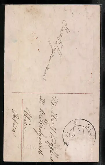 alte Ansichtskarte, gelaufen, Briefmarke entfernt, rückseitig Oberflächenschaden, guter Zustand