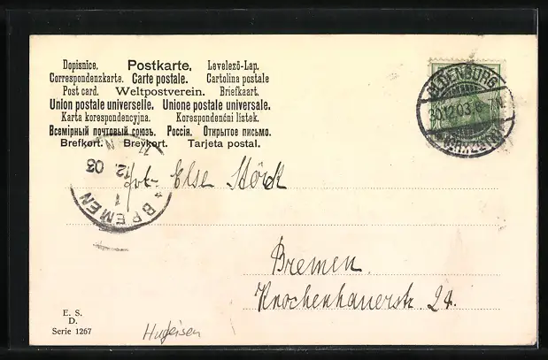 alte Ansichtskarte, gelaufen 1903, Stempelspur, guter Zustand