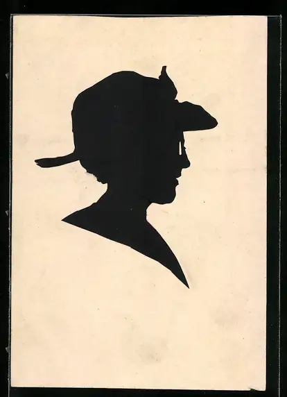 AK Dame mit Hut und Monokel, Scherenschnitt