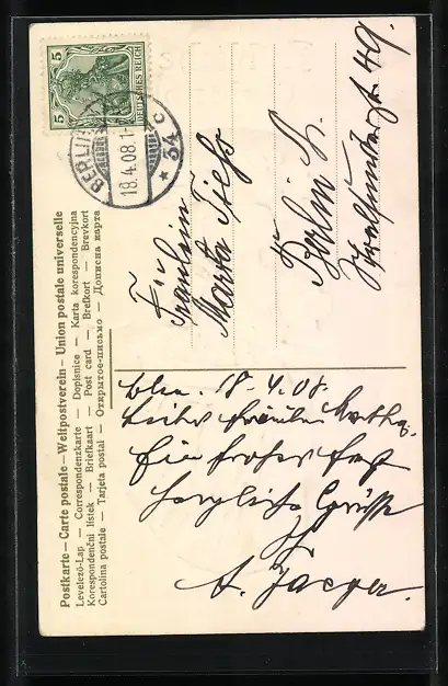 alte Ansichtskarte, gelaufen 1908, guter Zustand