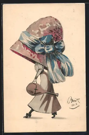 AK Dame mit übergrossem Hut und Lautengitarre, Mode