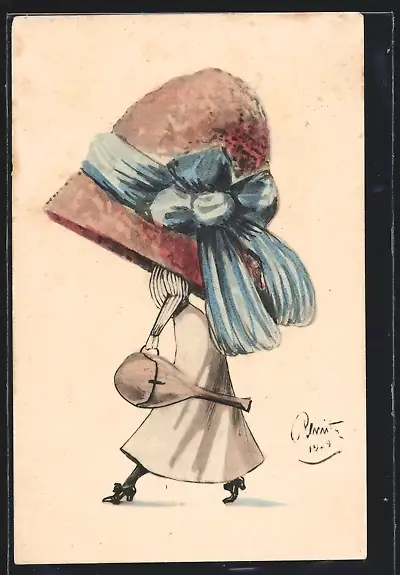 AK Dame mit übergrossem Hut und Lautengitarre, Mode