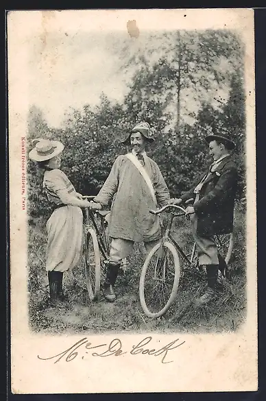 AK Dame und Herr mit Fahrrad