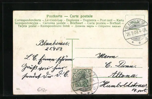 alte Ansichtskarte, gelaufen 1909, guter Zustand