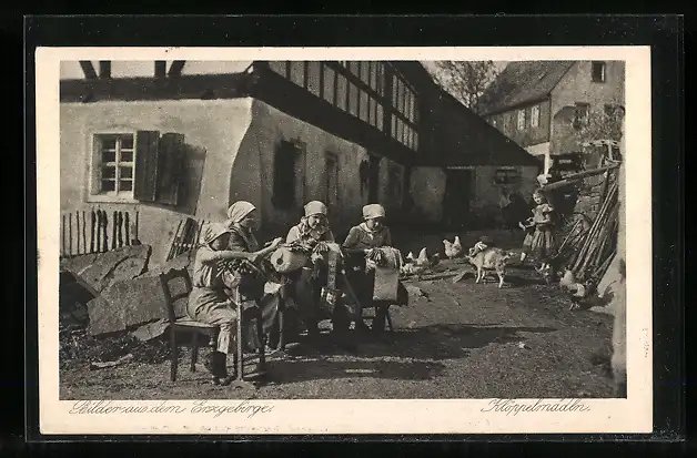 AK Damen in Trachten beim Klöppeln