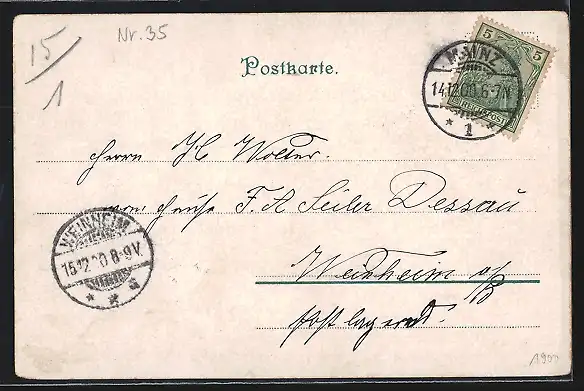 alte Ansichtskarte, gelaufen 1900, guter Zustand