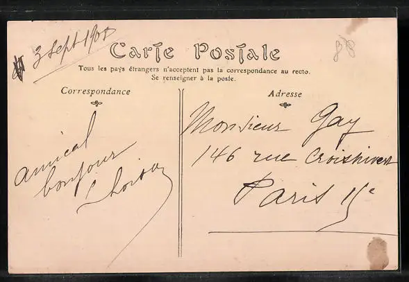 alte Ansichtskarte, gelaufen 1908, rückseitig Klebe- und Papierreste, guter Zustand