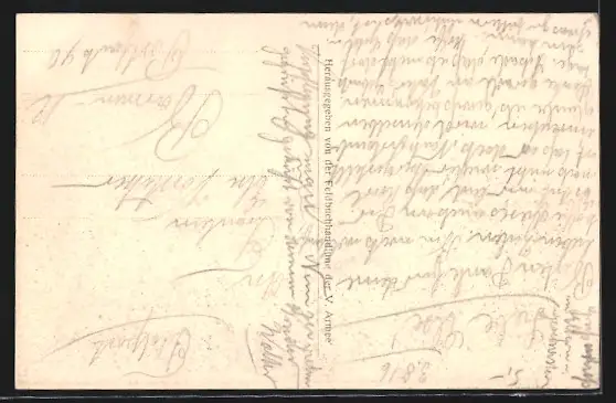 Personenbezogene Daten auf der Rückseite der Karte wurden durch blauen Textmarker unkenntlich gemacht. Die blauen Stellen sind auf die Vorderseite durchgeweicht und wirken sich negativ auf das Postkartenfoto aus