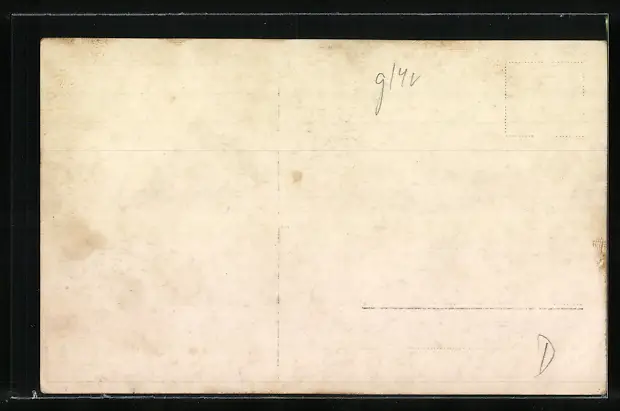 Personenbezogene Daten auf der Rückseite der Karte wurden durch blauen Textmarker unkenntlich gemacht. Die blauen Stellen sind auf die Vorderseite durchgeweicht und wirken sich negativ auf das Postkartenfoto aus
