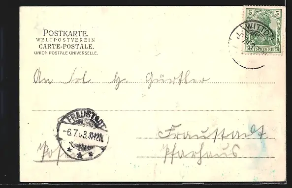 alte Ansichtskarte, gelaufen 1903, Stempelspur, guter Zustand