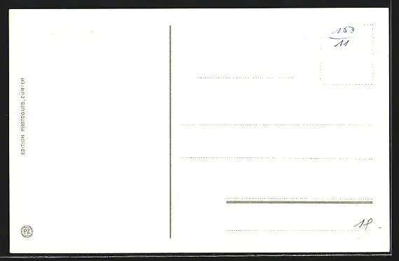 Personenbezogene Daten auf der Rückseite der Karte wurden durch blauen Textmarker unkenntlich gemacht. Die blauen Stellen sind auf die Vorderseite durchgeweicht und wirken sich negativ auf das Postkartenfoto aus