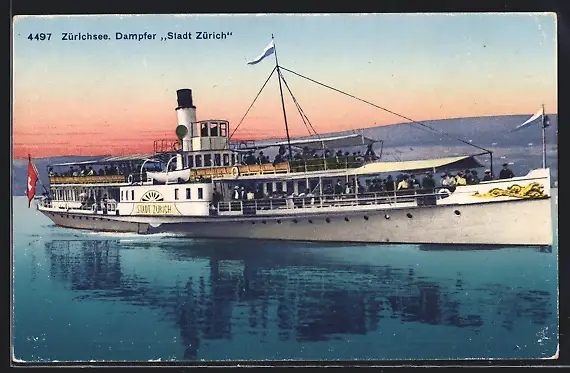 AK Dampfer Stadt Zürich auf dem Zürichsee