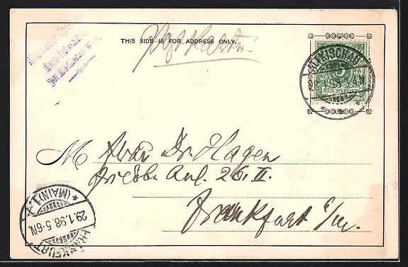 alte Ansichtskarte, gelaufen 1898, guter Zustand