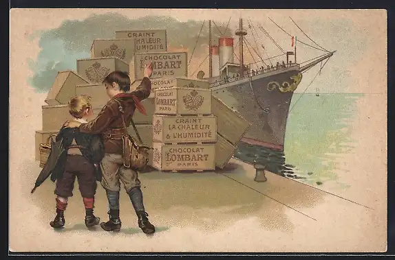 AK Dampfer im Hafen, Chocolat Lombart