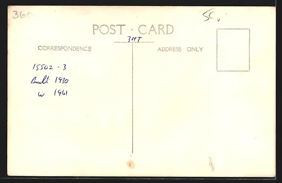 Personenbezogene Daten auf der Rückseite der Karte wurden durch blauen Textmarker unkenntlich gemacht. Die blauen Stellen sind auf die Vorderseite durchgeweicht und wirken sich negativ auf das Postkartenfoto aus