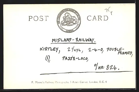 AK Dampflokomotive No. 824, englische Eisenbahn