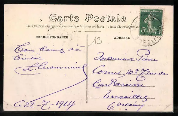 gelaufen 1914, Eckknick li. unten, Stempelspur, guter Zustand