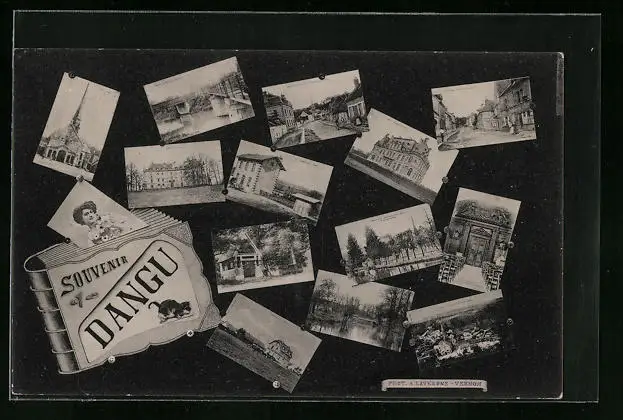 AK Dangu, La Gare, L`Eglise, Les Deux Ponts