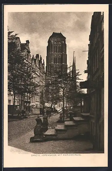 AK Danzig-Gdansk, Jopengasse mit St. Marien
