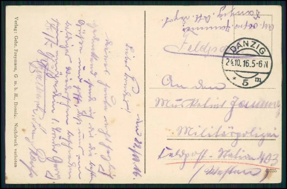 AK Danzig Gdańsk - Holzmarkt mit Kriegerdenkmal uvm. - 1916 gelaufen Feldpost