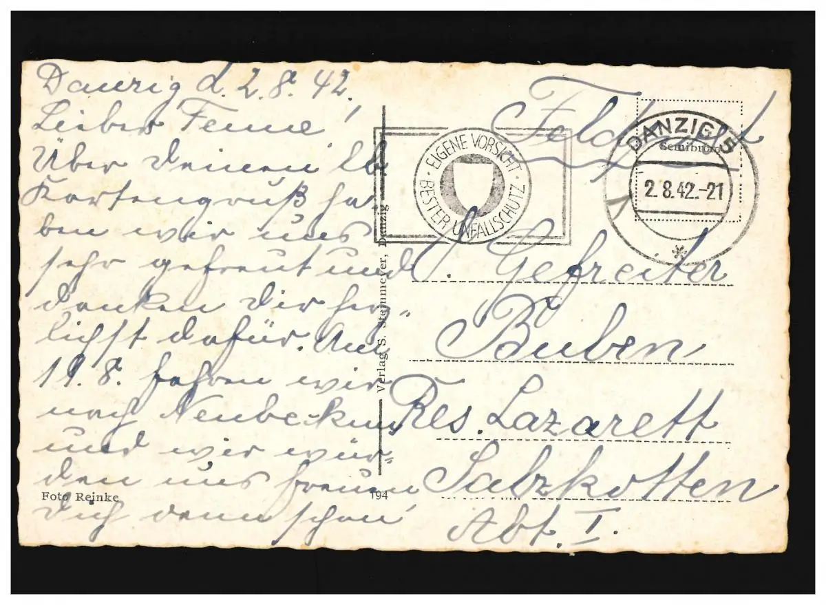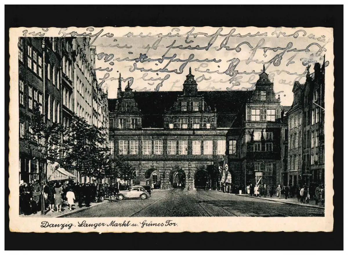 AK Danzig Langer Markt und Grünes Tor, Feldpost, Danzig 2.8.1942