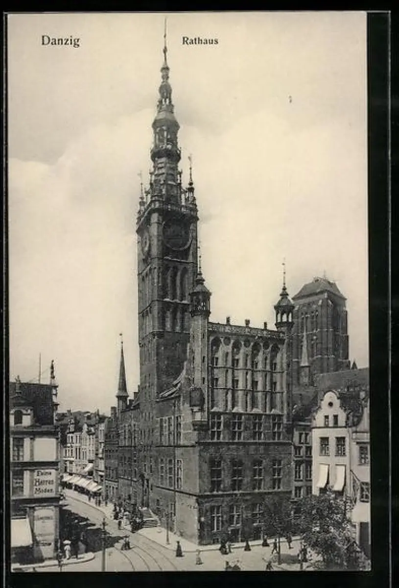 AK Danzig, Rathaus mit Strassenpartie