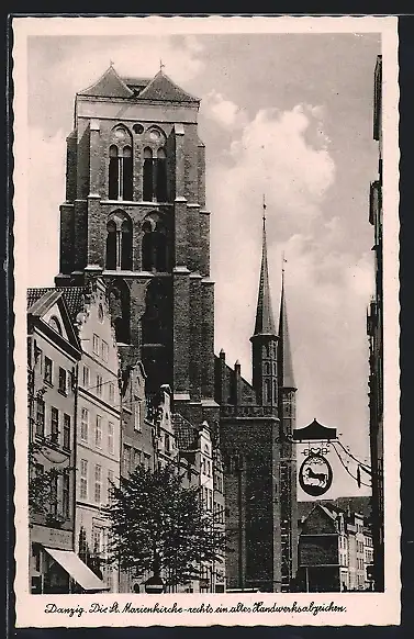 AK Danzig, St. Marienkirche, rechts ein altes Handwerksabzeichen