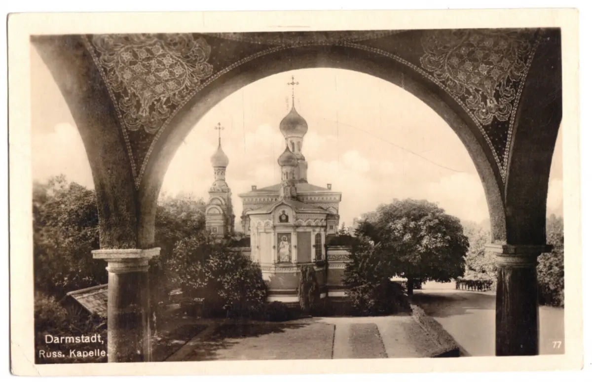 Ansichtskarte Darmstadt Blick zur Russischen Kapelle Erhaltung I-II postalisch gelaufen, gestempelt: Darmstadt, 3.12.43 Im Inland erfolgt die Zusendung versandkostenfrei Auslandsversand erfolgt über