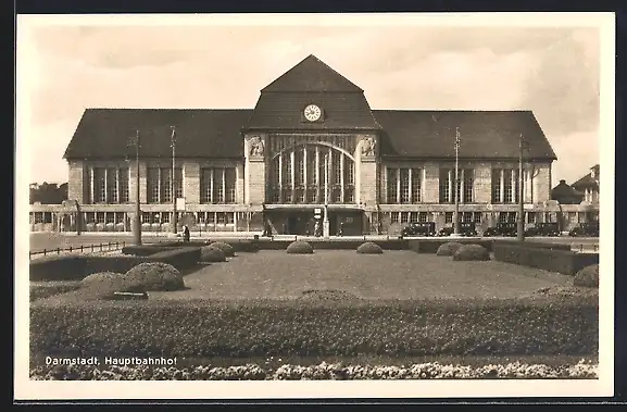AK Darmstadt, Hauptbahnhof mit Vorgarten