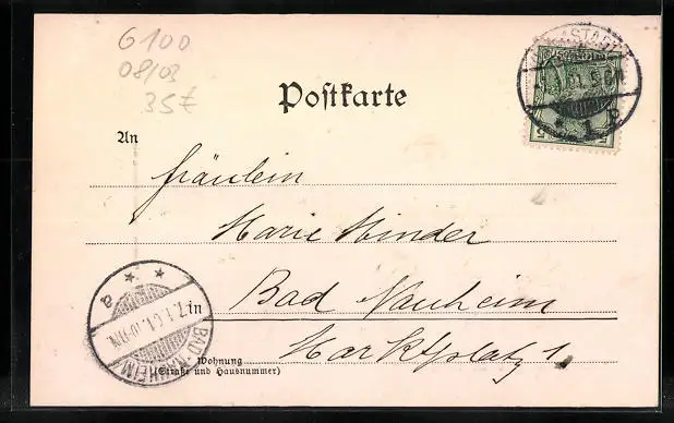 alte Ansichtskarte, gelaufen 1901, Stempelspur, sonst guter Zustand
