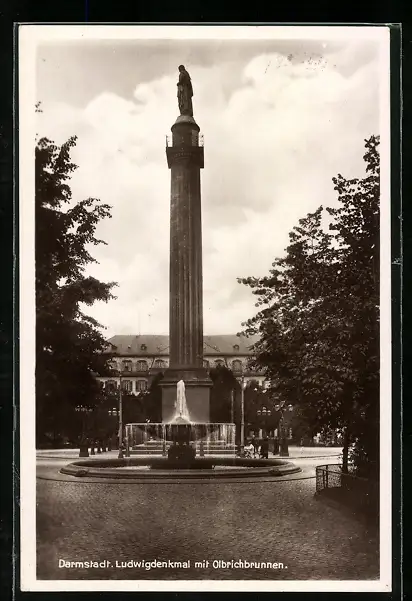 AK Darmstadt, Ludwigdenkmal mit Olbrichbrunnen