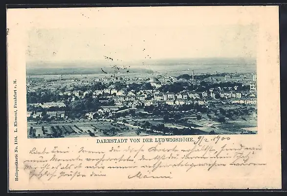 AK Darmstadt, Ortsansicht von der Ludwigshöhe aus