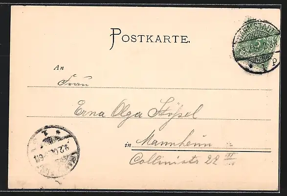 alte Ansichtskarte, gelaufen 1900, guter Zustand