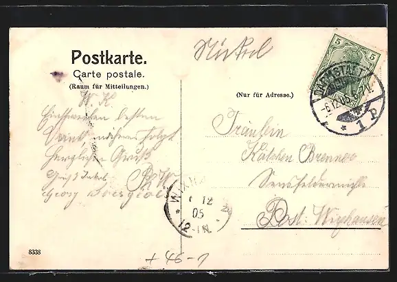 alte Ansichtskarte, gelaufen 1905, Stempelspur, guter Zustand