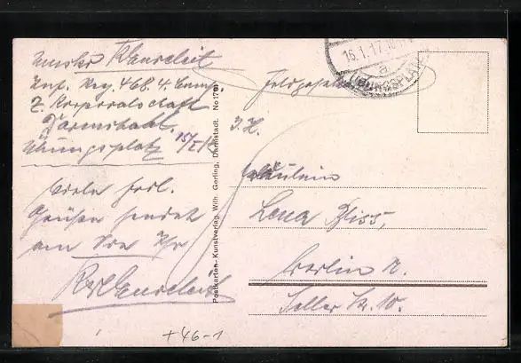 alte Ansichtskarte, gelaufen als Feldpost 1917, rückseitig Klebe- und Papierreste, guter Zustand