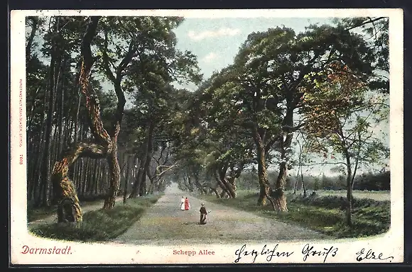 AK Darmstadt, Schepp-Allee mit Spaziergängern
