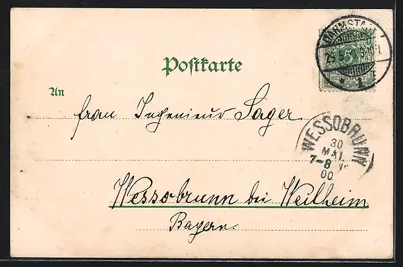 alte Ansichtskarte, gelaufen 1900, Eckknick unten re., guter Zustand