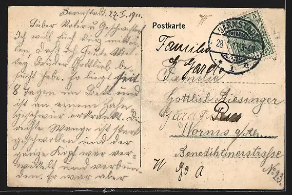 alte Ansichtskarte, gelaufen 1911, Eckknick re. unten, Stempelspur, guter Zustand