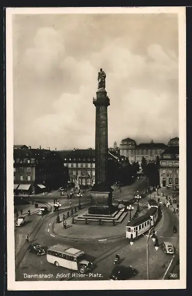 AK Darmstadt, Strassenbahn am Platz