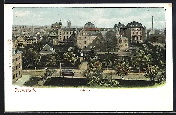 AK Darmstadt, Strassenbahn am Schloss