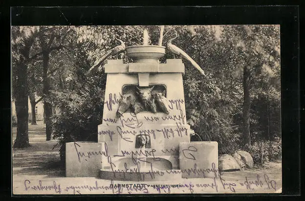 Personenbezogene Daten auf der Rückseite der Karte wurden durch blauen Textmarker unkenntlich gemacht. Die blauen Stellen sind auf die Vorderseite durchgeweicht und wirken sich negativ auf das Postkartenfoto aus
