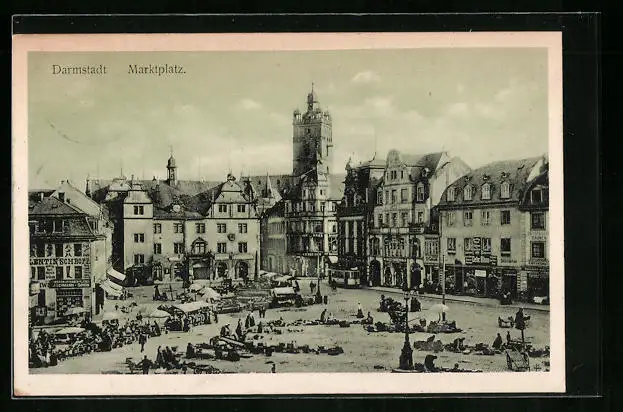 AK Darmstadt, belebter Marktplatz