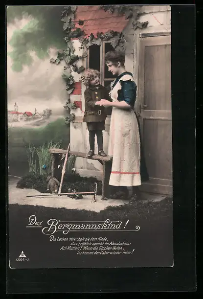 AK Das Bermannskind, Mutter streichelt dem Kinde die Locken, Bergbau