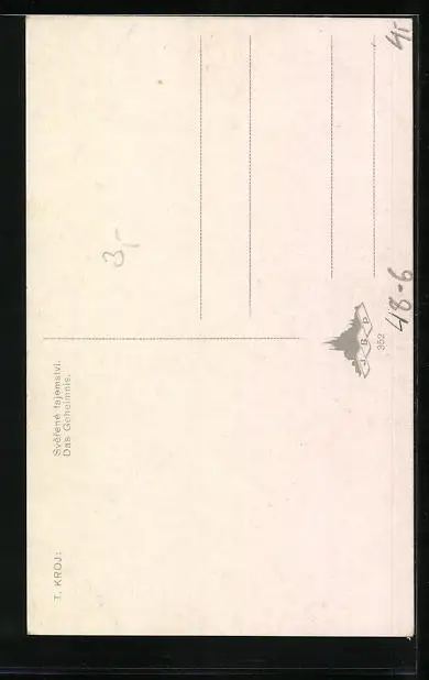 Personenbezogene Daten auf der Rückseite der Karte wurden durch blauen Textmarker unkenntlich gemacht. Die blauen Stellen sind auf die Vorderseite durchgeweicht und wirken sich negativ auf das Postkartenfoto aus