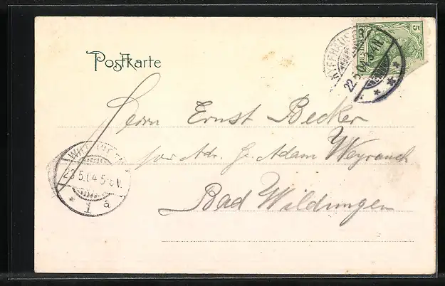 alte Ansichtskarte, gelaufen 1904, Stempelspur, guter Zustand