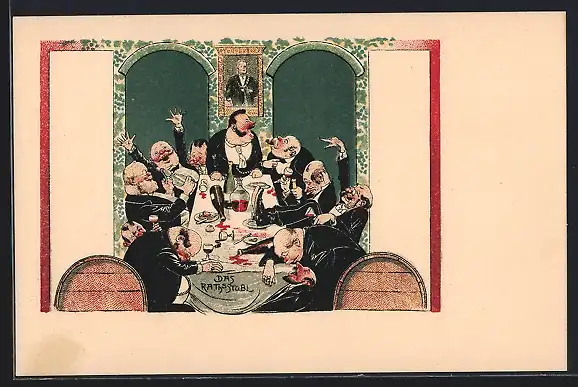 AK Das Rathsstubl, Betrunkene zwischen Fässern