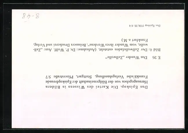 Personenbezogene Daten auf der Rückseite der Karte wurden durch blauen Textmarker unkenntlich gemacht. Die blauen Stellen sind auf die Vorderseite durchgeweicht und wirken sich negativ auf das Postkartenfoto aus