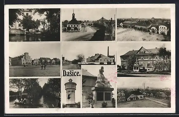 AK Dasice, Strassenpartie, Denkmal, Turm