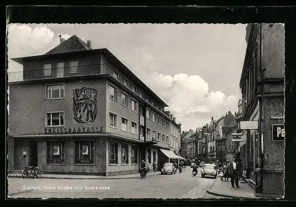 AK Datteln, Hohe Strasse mit Sparkasse und VW-Käfer